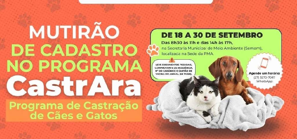 CastrAra: Meio Ambiente realiza mutirão de cadastro entre os dias 18 e 30 de setembro