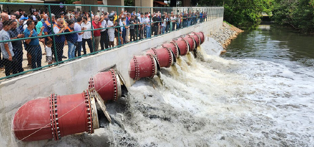 19 de dezembro de 2022O governador do Estado, Renato Casagrande, realizou, na manhã deste sábado (17), a Estação de Bombeamento de Águas Pluviais (EBAP) Marinho, no município de Cariacica. Com investimento de R$ 42,5 milhões, o equipamento terá capacidade de bombeamento de 72 milhões de litros/hora por meio de oito bombas, podendo ter a sua capacidade ampliada para 81 milhões de litros/hora, auxiliando a drenagem das águas da bacia do Rio Marinho. Cerca de 100 mil habitantes serão beneficiados com o investimento.