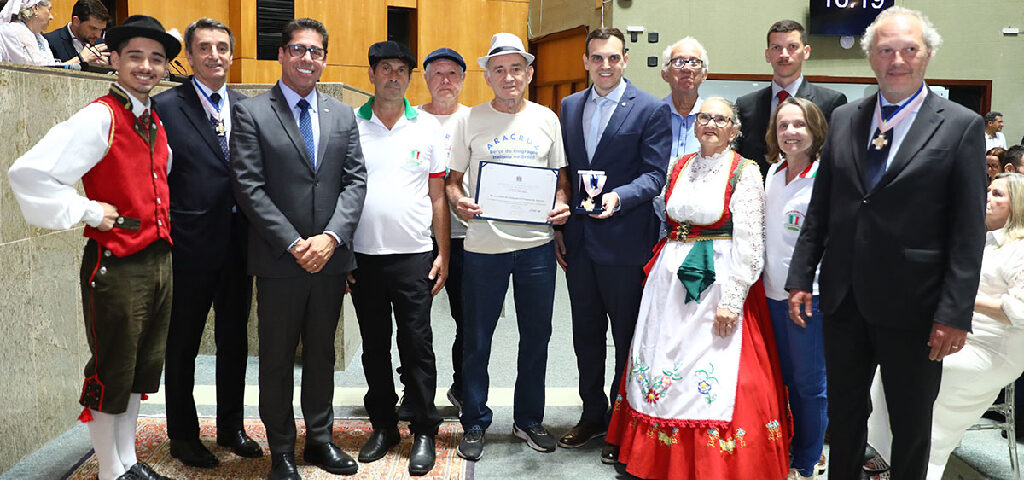 O Plenário Dirceu Cardoso foi palco de comemoração, na tarde desta quinta-feira (17), dos 150 anos da imigração italiana no Espírito Santo, e, portanto, no Brasil. Com a presença do embaixador da Itália no Brasil, Alessandro Cortese, e do cônsul-geral da Itália no Rio de Janeiro, Massimiliamo Iacchini, o presidente da Assembleia Legislativa (Ales), deputado Marcelo Santos (União), pôde coordenar sessão solene para homenagear descendentes e entidades que valorizam e cuidam da identidade herdada do Bel Paese (belo país).