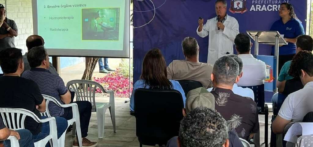 A Prefeitura de Aracruz realizou, nesta terça-feira (25), a palestra Novembro Azul com o tema “Cuidar da saúde também é coisa de homem”, em uma ação voltada especialmente aos servidores públicos municipais. O encontro aconteceu em frente ao Gabinete do Prefeito e foi promovido pela Secretaria Municipal de Gestão (Semge), em parceria com o Grupo Innovar.