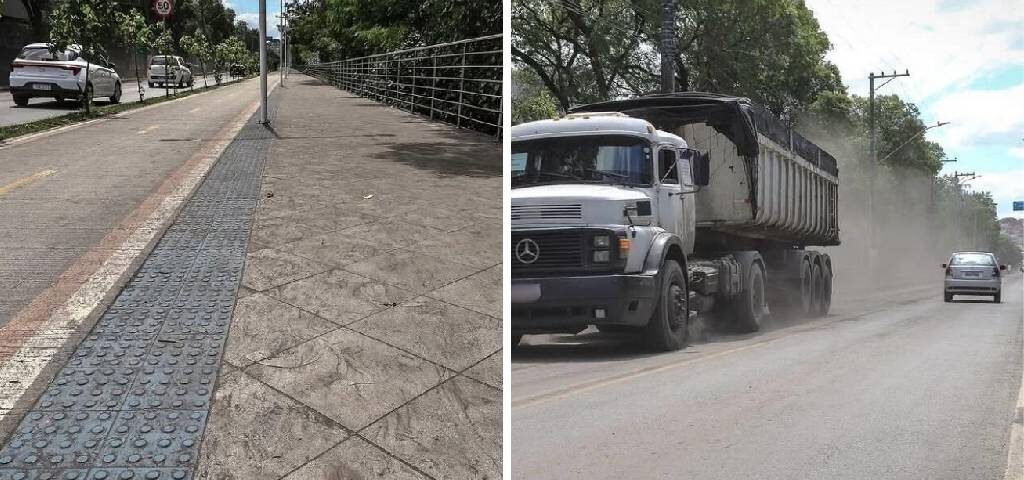 Além disso, Inspetoria de Trânsito do município informa que há fiscalização no local e quando é constatado que o veículo está estacionado irregularmente, é lavrado o auto de infração e tomada as medidas administrativas pertinentes. Quando o caminhão está transportando material e é flagrado deixando cair qualquer tipo de objeto, ele também poderá ser autuado. Os moradores podem acionar o serviço por meio do 162″.