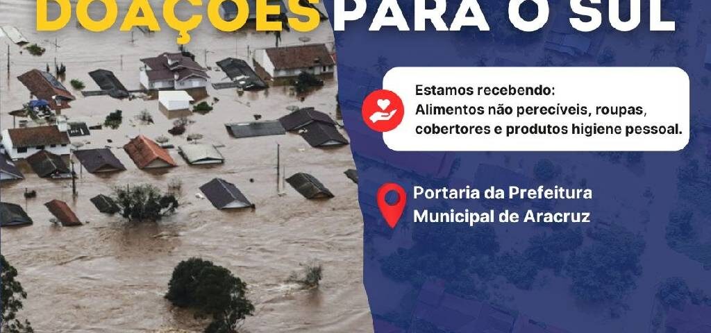 10 de maio de 2024Diante da recente tragédia que assolou o Sul do Brasil, a Prefeitura de Aracruz convoca a comunidade a se unir em um gesto de solidariedade.