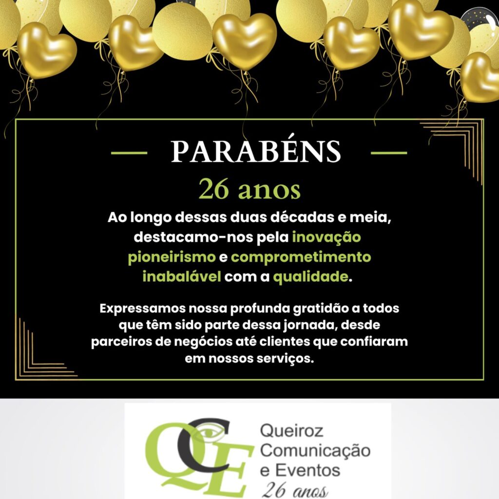 QUEIROZ COMUNICAÇÃO E EVENTOS COMPLETA 26 ANOS, PARABÉNS.
